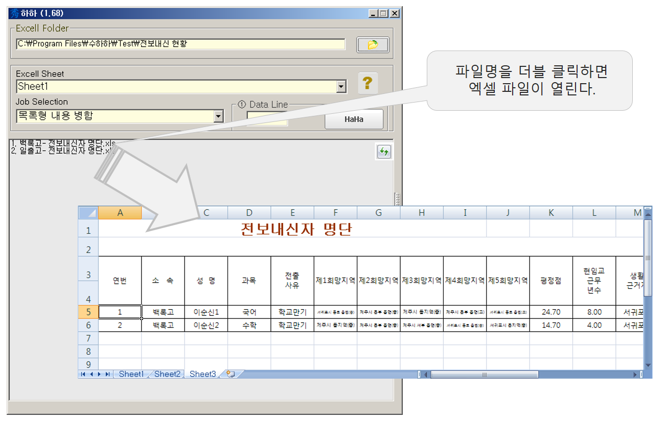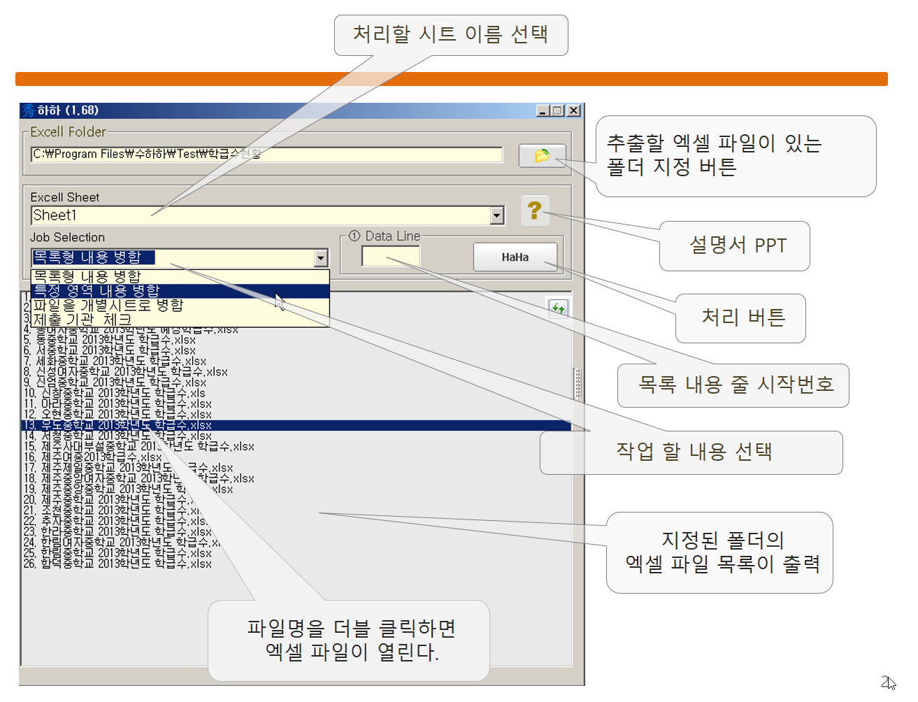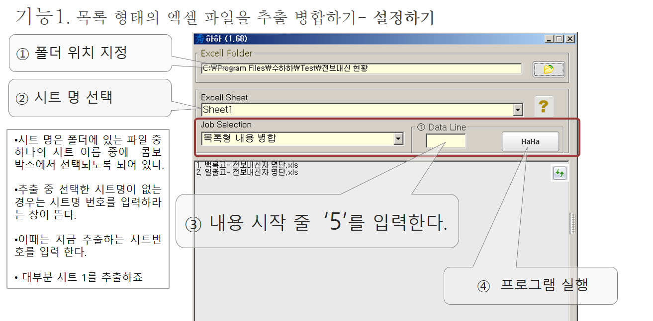 여러 개의 엑셀파일을 한 개의 파일로 만드는 엑셀 자동 병합 프로그램이다.