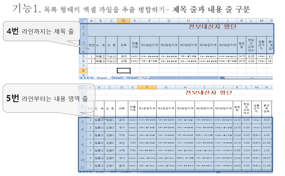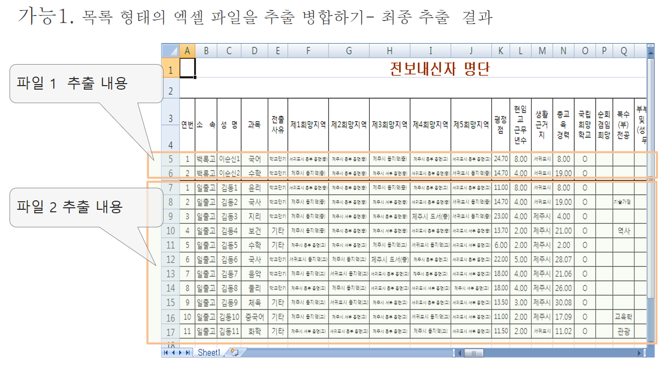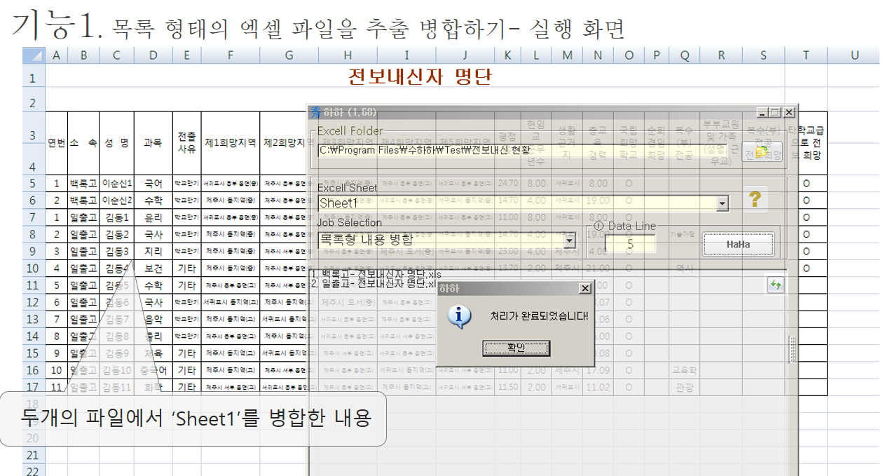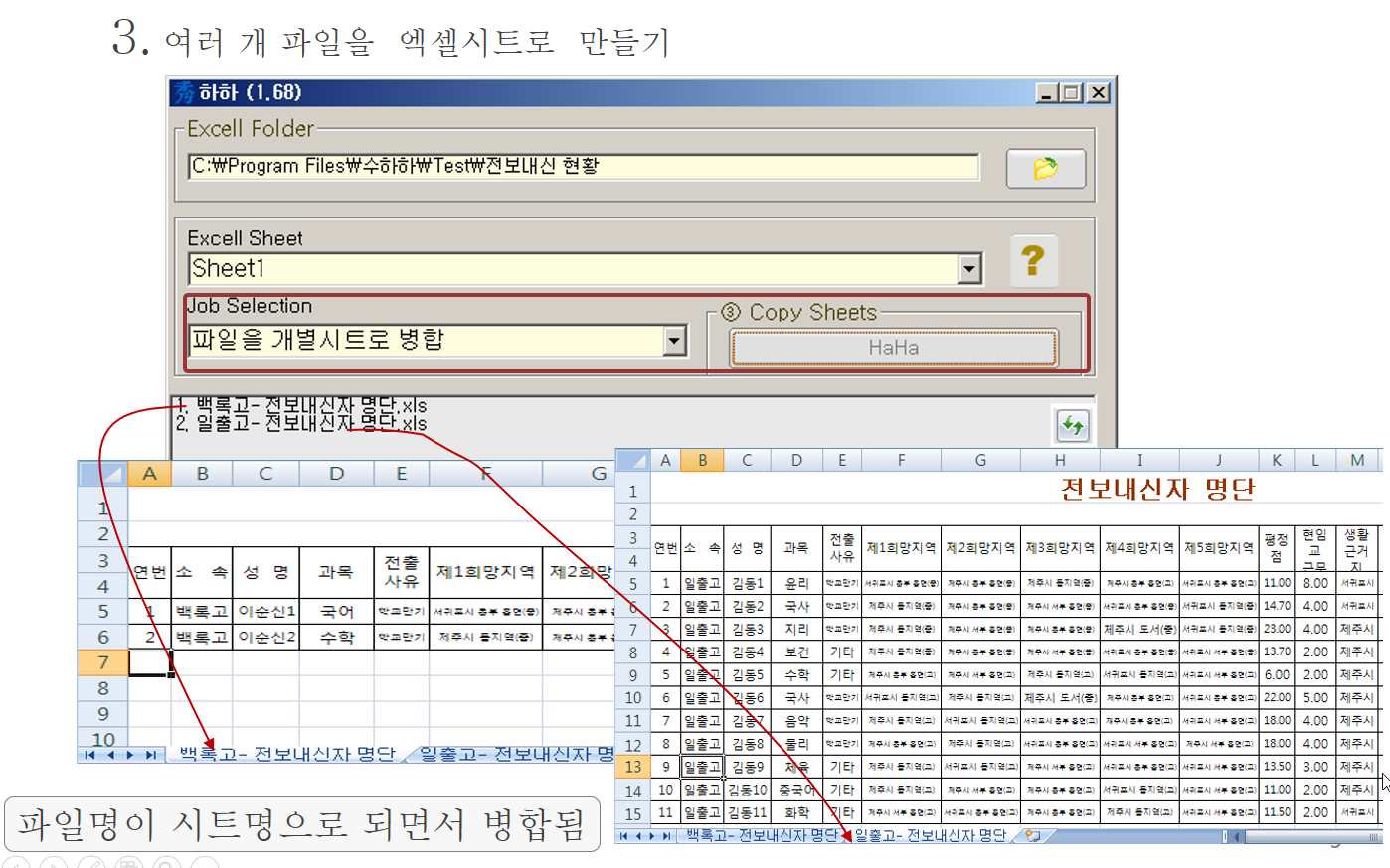 - 여러 개의 엑셀 파일을 개별시트로 병합
